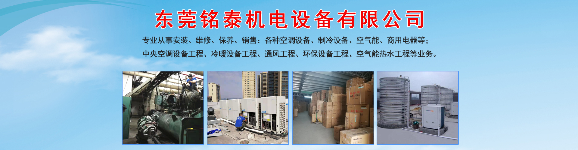 中央空調:銷售施工維修保養 工商業空調:安裝改造維修保養 冷庫:銷售施工維修保養 冷水機、冷凍機、恒溫恒濕機... 空氣能中央熱水:銷售安裝維修 制冷設備/超低溫深冷:維修 廠房車間降溫工程 制冷工程